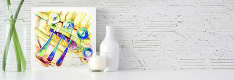 My music series is a collection of illustrations of instruments, portraits of performers, and abstract paintings inspired by music. My husband, a music educator, inspires many of the musical themes in my work.